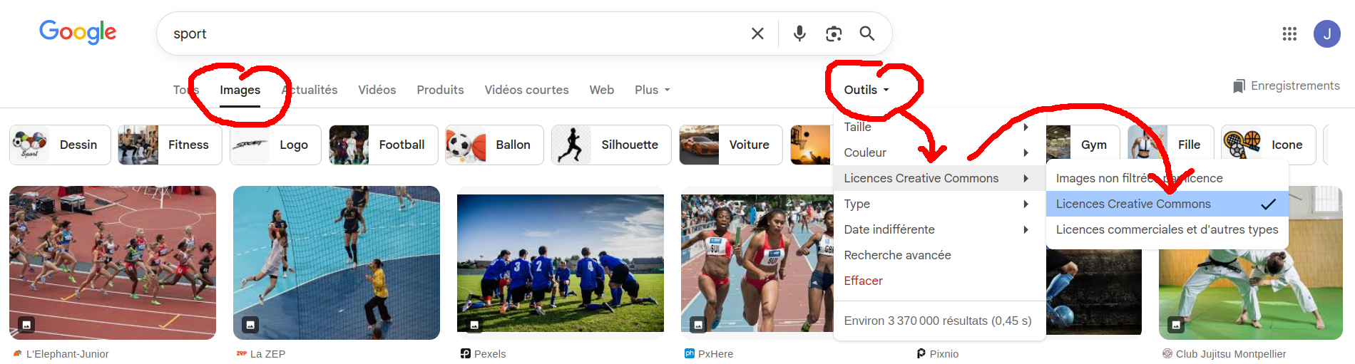 - Trouver des images Creative Commons avec le moteur de recherche Google :