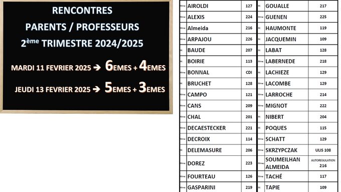 SALLES POUR LES RENCONTRES PARENTS/PROFESSEURS 2025