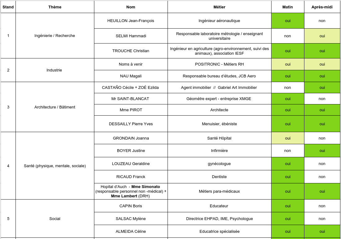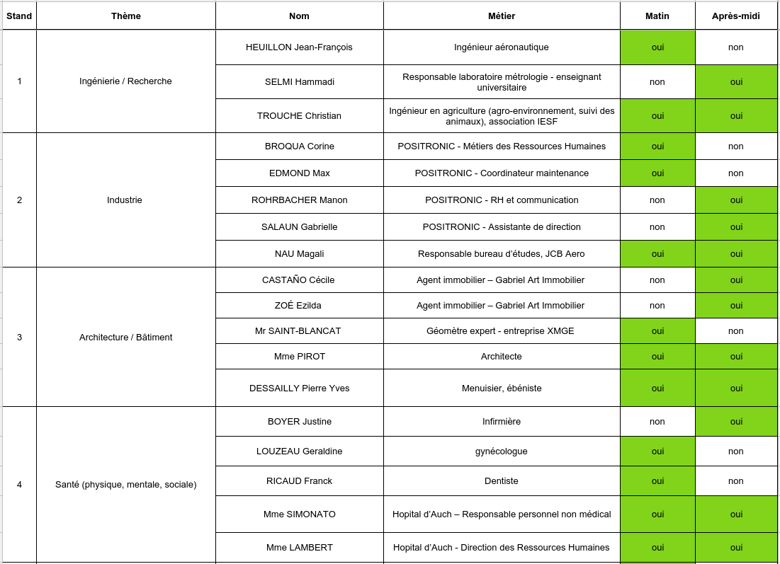 Une réserve de fiches métiers sera disponible à l'entrée de la salle 1 pour les élèves qui auront oublié celle distribuée en classe.